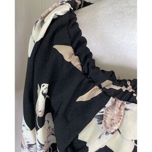 Lulus Womens Light Of Dawn Black Floral On Off Shoulder Split Back Cropped Top-L.