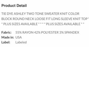 • PRODUCT: Two Tone Tie Dye Ashley Knit Lightweight Color Block Sweater