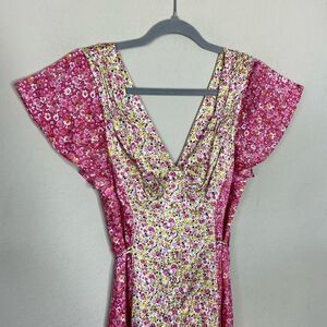 Cinq à Sept Jessica Midi Pink Yellow Dress Floral Stripe Wrap Size 0