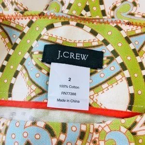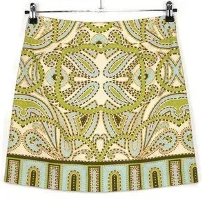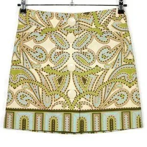 J Crew Skirt Ivory Green Blue Paisley Pockets