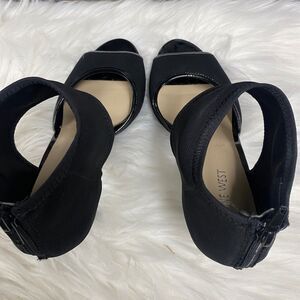 Nine West Women’s Garofalo Peep Toe Hooded Heel Pump Size 9 Black Elastic Zip Up