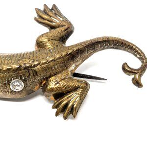 Victorian Lizard Salamander brooch Aluminum Gilt w paste stones 1890s-1900s