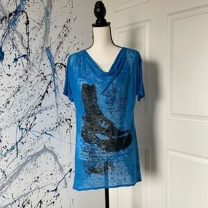 Morphine Generation ‘give em the boot’ burnout t-shirt. Sold at ModCloth. Super cool drapey neckline, high low sides. Size Large. EUC