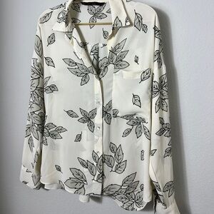 EUC Zara Basic Green Leaf Flowy Blouse Top