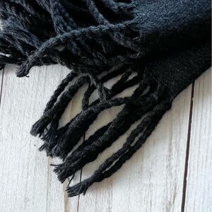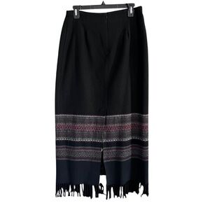 Vintage Cabincore Wool Blend Fringe Maxi Skirt Plaid and Black size M