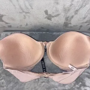 Victoria's Secret Uplift Demi Bra 36DDD Front Closure Logo Strap Nude Beige
