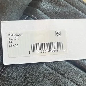 Stylish black faux leather jeans by Steve Madden. Ideal for versatile wear. Comfortable and trendy. Zipper and button front. Back pockets.