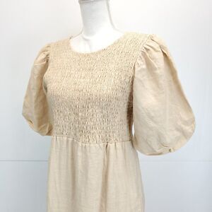 FAITHFULL THE BRAND Alberte Puff Sleeve Smock Midi Dress