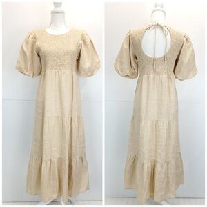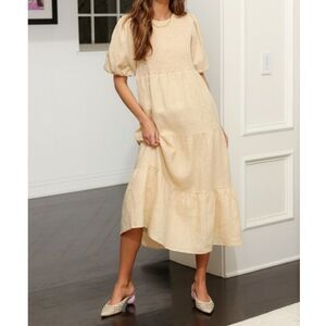 Faithfull the brand Boho Summer Dress Midi Designer Wedding Photoshoot Travel Vacation Cruise Contemporary Bohemian Elegant Preppy Tan Midi Dress Minimalist Light Academia