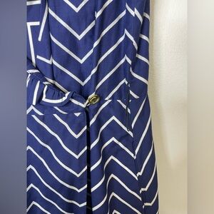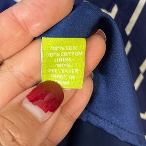 Elizabeth McKay Scotland Silk Cotton Dress in navy Waves Wrap Stand Collar 12