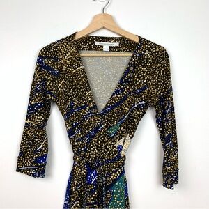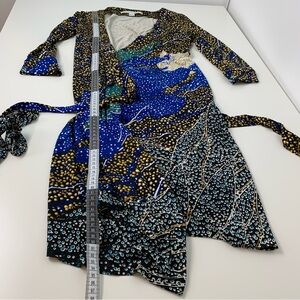 Diane Von Furstenberg Wrap Dress Silk Sz 2 Galaxy Celestial Black Blue Belted