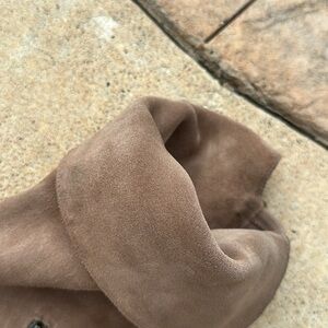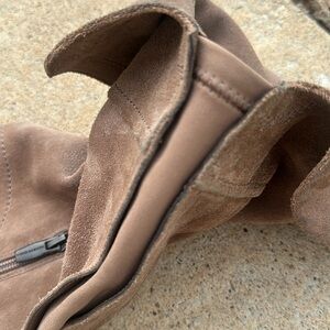 Fabulous boots in a size 10 m 40. They are in great condition. There is some small darkening areas inside boot (probably from jeans ). I haven’t attempted to clean! Shown in pictures. Can be worn over the knee or folded down to just below. 7” one way across calf -