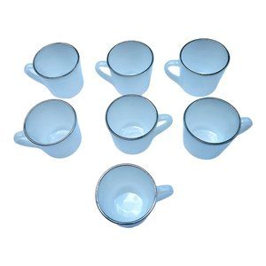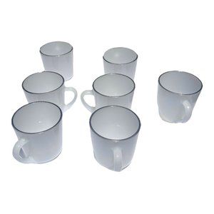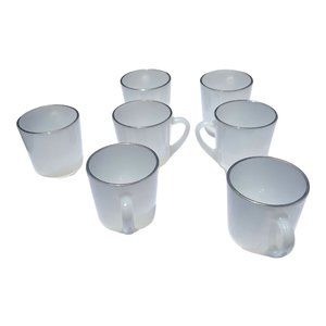 Vintage Anchor Hocking Milk Glass Mugs Set of 7 EUC White With Silver Rim