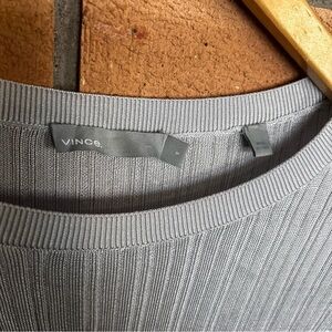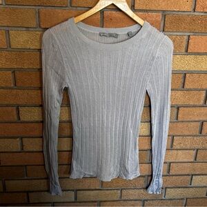 Vince Ribbed Crewneck Silver Metallic Long Sleeve Top Size Small