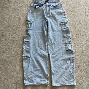 Fashion Nova Light Blue Distressed Wide Leg Jeans