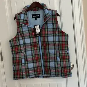 Lands' End womens Colorful Plaid Puffer Vest new XL Holiday Preppy