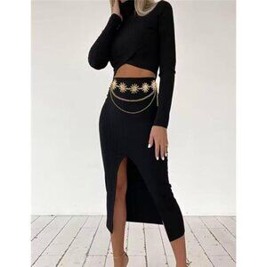 Designed with layered gold & silver chains featuring sun and moon charms, this versatile accessory can be worn as a waist belt, body chain, or belly chain. Perfect for styling over dresses, skirts, or swimwear, it adds a touch of boho, festival, and Y2K glam to any outfit.