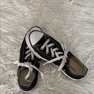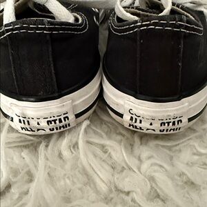 Timeless black sneakers with white accents. Features durable canvas and signature Converse style.
