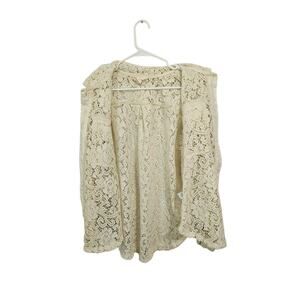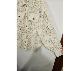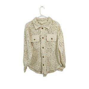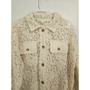 Bibi Oversized Cream Lace Button Down Shacket Size Small Front Pockets Collar