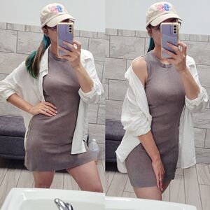Aritzia / Wilfred Free Dunes Garment Dye Grey Taupe Ribbed Mini Dress, Size S