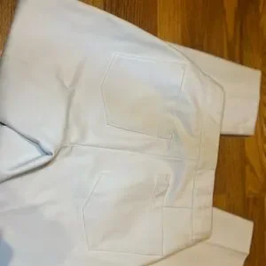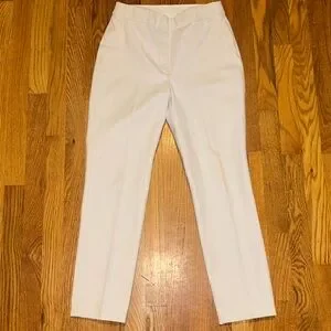 These white pants feature a flattering flat front design, straight leg silhouette, and are machine washable for easy care.