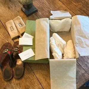 Nice pair of Authentic Gucci Sandals. Includes 2 Gucci Dust bags and Box