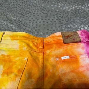 Brighten up your wardrobe with these vibrant tie-dye flared jeans from Lee. Featuring a playful mix of pink and orange, these bottoms are perfect for adding a splash of color to any outfit.