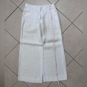 Stylish white wide leg linen pants by Theory. Perfect for versatile wear, to work or on vacation. Comfortable and elegant design.