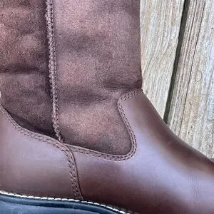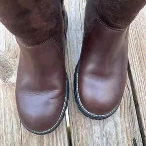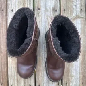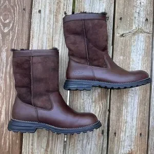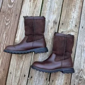 Ugg Brooks Brown Leather Shearling Lined Mid Rise Boots Women's Size 7