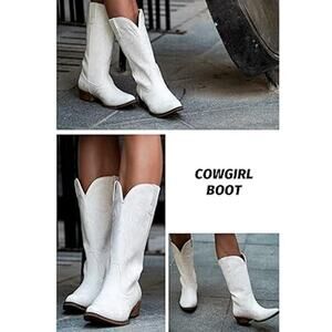IUV Womens Size 10.5 White Faux Leather 2" Chunky Heel Western Cowboy Boots