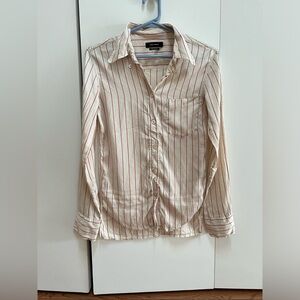 Stylish button-down shirt with red stripes. Features a classic collar and front pocket. Perfect for casual or formal wear.