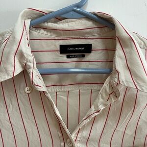 Isabel Marant Cream and Red Striped Button Down Shirt