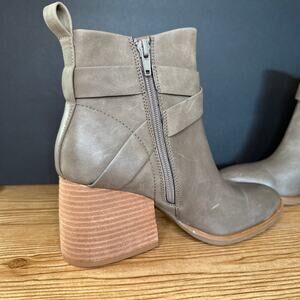 Korks Grey Wood Block Heel Ankle Booties Boot Sz 7 Gray Western Boho Shabby Chic