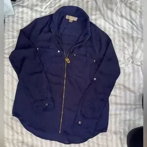 Michael Kors Navy Zipper-Down Blouse. Size Medium