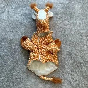 Let your pup stand tall this Halloween in this adorable Spooky Night giraffe costume! 🦒 This plush outfit features giraffe spots, a 3D hood with ears, horns, mane, and a tail for the cutest safari look. Perfect for trick-or-treating, parties, or photos.