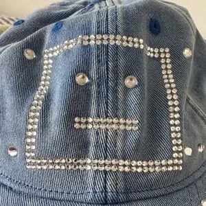 Stylish denim cap adorned with sparkling rhinestones. Perfect for adding a touch of glam to any outfit. Super unique one.