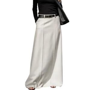 Commense Women's Small White Solid Pleated Pocketed Formal Maxi Skirt