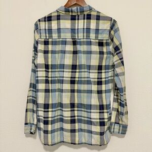 Toad & Co 100% Organic Cotton Popover Top Long Sleeves Blue Plaid Medium