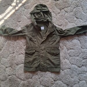 Keep your child warm and stylish with this olive green hooded jacket. Perfect for outdoor adventures.