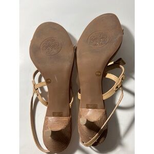 Step out in style with these elegant Tory Burch sandals. Featuring a chic tan color and charming bow detail, these sandals are perfect for any occasion.