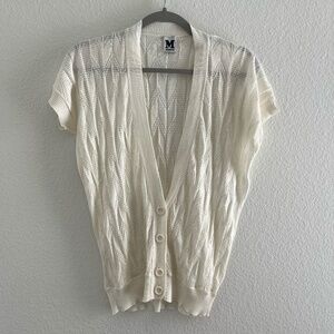 MISSONI | Knit Button Front Short Sleeve Cardigan Top in Cream/White | Size US 6