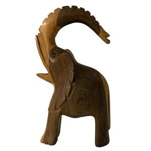 Vintage Hand Carved Wooden Elephant With Raised Trunk Good Luck Animal Figurine