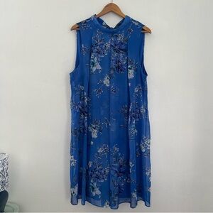 Lane Bryant Blue Floral Metallic Print Sleeveless Mock Neck Pleated Midi Dress