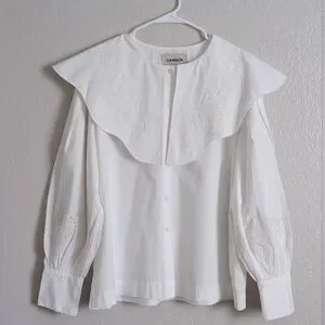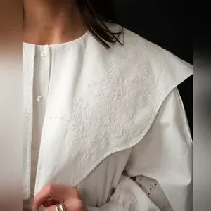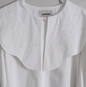 Damson Madder Romeo Broderie Oversized Cotton Button Up Heart Blouse