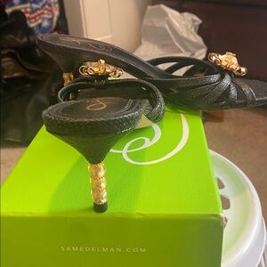 Sam Elderman Posey black weave heels