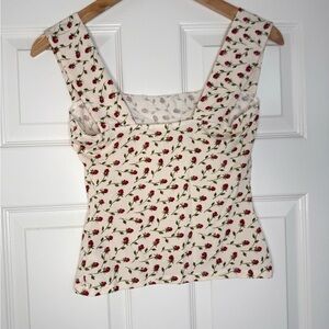 REFORMATION Clarke Knit Tank - Madison Rose Floral White Green Red XS
