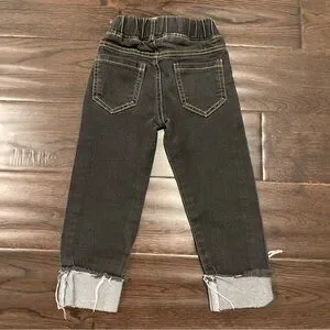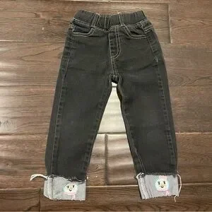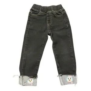 Kids Black Jeans with Snow-girl Embroidered Cuffs Distressed Hem Size 2T