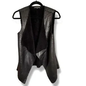 Rock & Republic Black Faux Leather Vest Open Front Sherpa Lined Women's Size XS