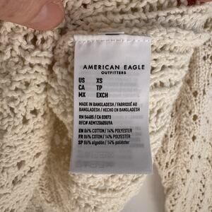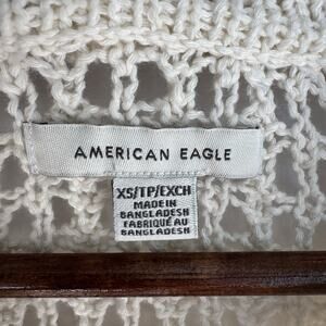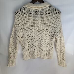 American Eagle Women’s XS Lace Up Collared Crochet Open Knit Cream Sweater Boho