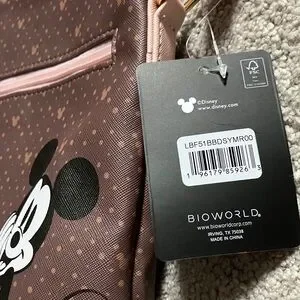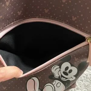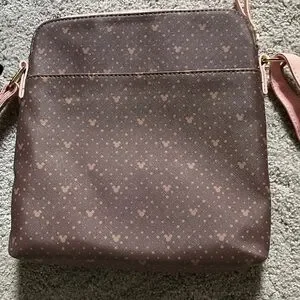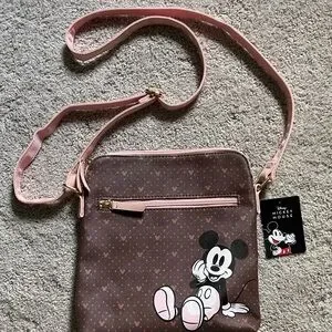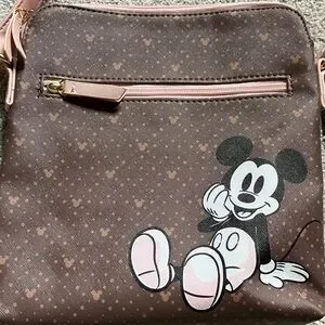 Disney Mickey Mouse Print Crossbody Purse Handbag Brown & Pink